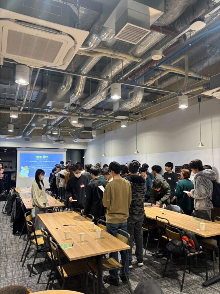 3. 企業クイズビンゴ大会 一番の盛り上がりを見せたのがこのプログラム!「実はこんなユニークな社内制度がある」「社員の意外なキャリアエピソード」など、企業にまつわるクイズを解きながらビンゴを目指します。遊びながら自然と「その企業ならではの社風」が学生たちの心に刻まれました。