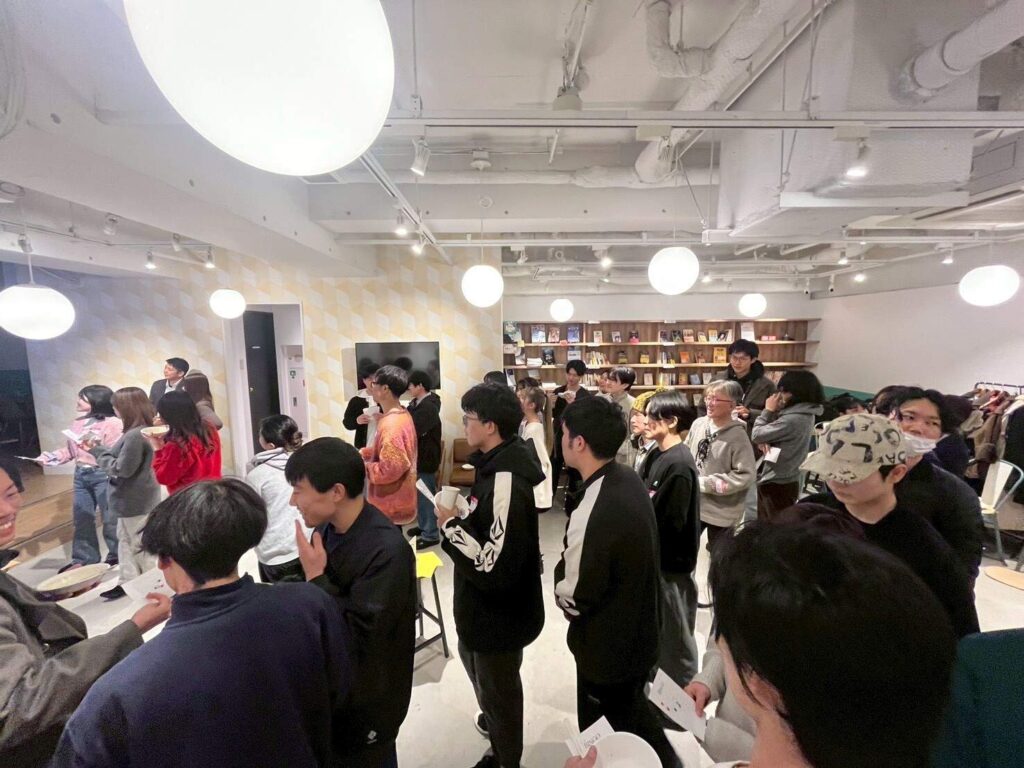 2. 乾杯・フリー歓談 軽食を囲みながらのフランクな交流タイム。いつもの選考会とは違うリラックスした雰囲気で、会話が弾みます。